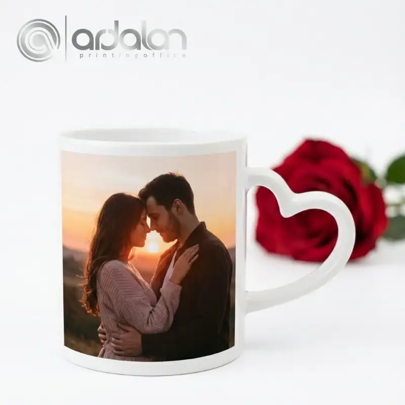 ۴. چاپ لیوان دسته قلبی (هدیهای خاص)