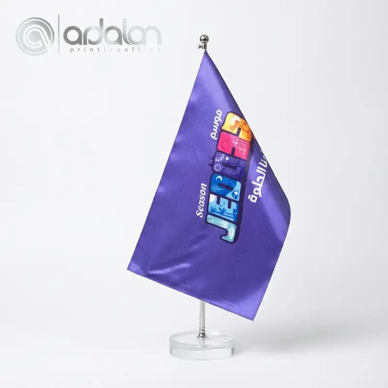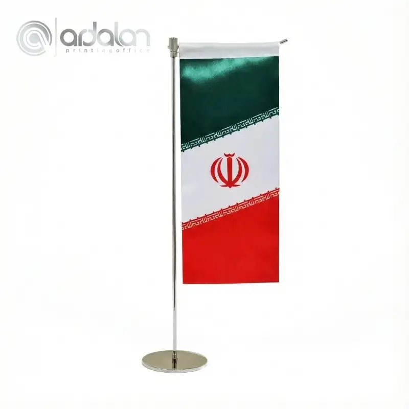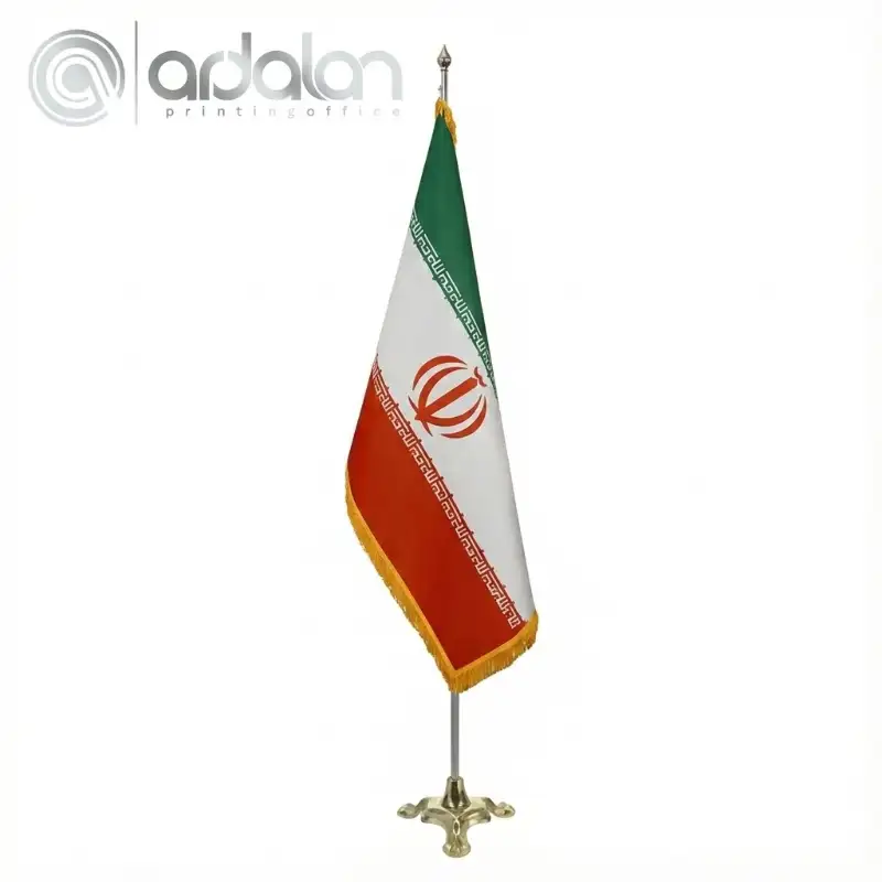 برای پرچم های تشریفات و رومیزی، از ساتن آمریکایی و براق استفاده میکنیم. این پارچه بافتی متراکم، سنگین و لوکس دارد که باعث میشود پرچم ایستایی مخروطی و شکیلی داشته باشد. - چاپ سابلیمیشن (تضمین رنگ):