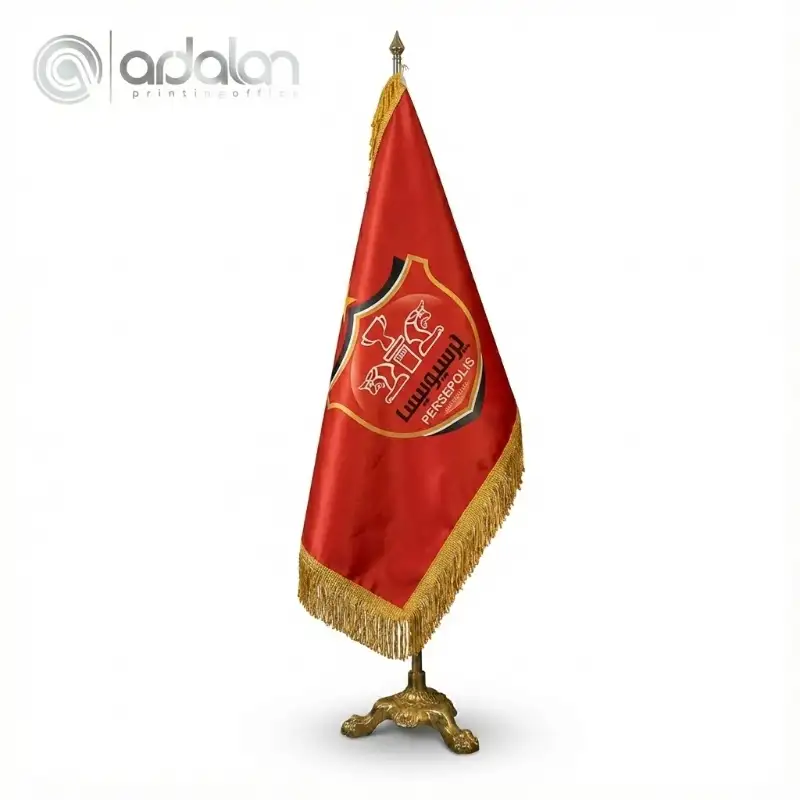 برای پرچم های تشریفات و رومیزی، از ساتن آمریکایی و براق استفاده میکنیم. این پارچه بافتی متراکم، سنگین و لوکس دارد که باعث میشود پرچم ایستایی مخروطی و شکیلی داشته باشد. - چاپ سابلیمیشن (تضمین رنگ):